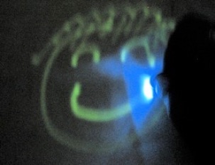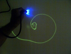 The LightWriter is our most popular and affordable product, now found in museums across the country. The bright blue, long-life LED is used to doodle on a glow-in-the-dark surface. It makes a perfect addition to an existing Frozen Shadows exhibit, or we can help you set up an installation from scratch. Check out our Pendulux exhibit for ideas about other great ways to use this technology. (If all you want is a Frozen Shadows exhibit, we can help you with that too. Call us versatile, and call us, The Exhibit Guys, to discuss the many possibilities.
